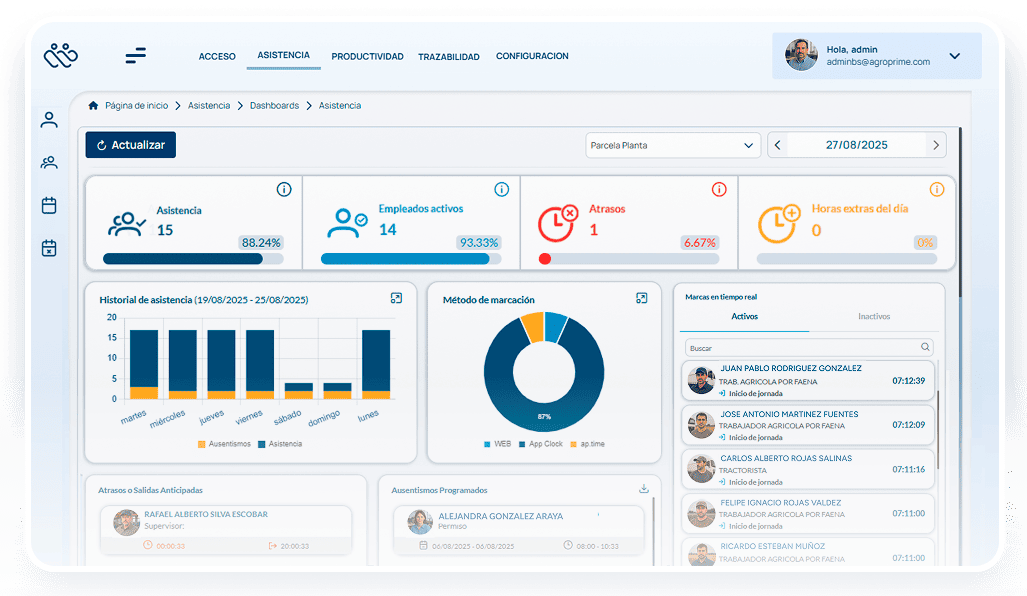 Controla la asistencia de tu personal en tiempo real