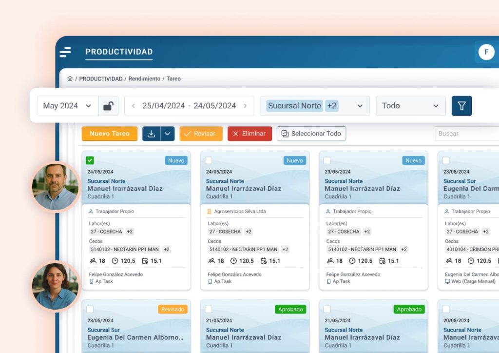 Contrata trabajadores en terreno, asigna actividades y activa sus rendimientos de inmediato